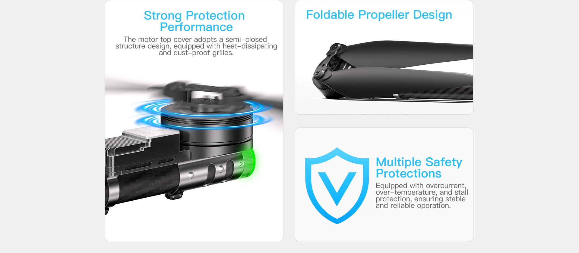 With a maximum carrier signal of 50kHz, it supports a maximum electrical rotational speed of 250,000 rpm, featuring higher motor control resolution and more precise flight attitude control.